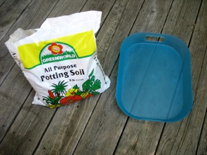 Potting soil is quite inexpensive, and if you re-use it for your Easter garden year after year, the cost is negligible. If you happen to have a yard, you can get the dirt for free. Just bake it in a low oven for a couple of hours to kill any creepy crawlies (but not in the plastic tray, for obvious reasons!.)