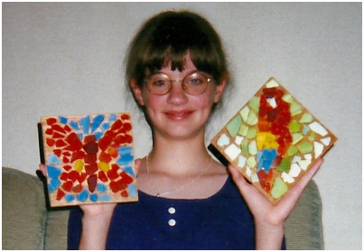 These mosaic pictures were made out of polished glass fragments rather than ceramic tiles. They come in more vivid colors than you can sometimes find in tiles. See what you can find at your local craft store or hardware/home improvement stores. If you use tile, you can buy tile nippers to cut the tiles. Give the children squares of plywood, and let them arrange the glass or tile into a picture. Once they like the design, glue the tiles onto the base.