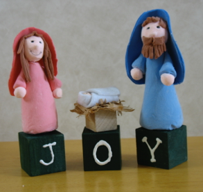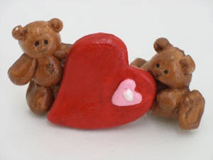 If you are making objects with more than one piece, rub a little water onto the place you want to join, and gently twist them back and forth as you press them together, to get the clay to mix and form a better bond. For some reason, heads tend to fall off even if you do this, so poking a toothpick through the head and into the body can keep the head from falling off later. As an alternative way to keep the head from falling off, you can make the body and head from one piece (which doesn’t work if you are using different colors of clay as in the figures above, but would work for bears or snowmen.)