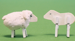 Use Q-tips to make legs. Use black beads to make eyes. Use pliers to bend a paper clip into a spiral to make the sheep look wooly.