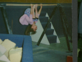Summersaults can be a challenge for young children, but they can master them with a little help. Older children like the challenge of learning to do a cartwheel. If you don’t know how to do it yourself, enlist a neighborhood teenager or friend to teach your kids. Once they can do a “bridge” (lie on their backs, then push their bodies up in the middle to form a bridge), they can try to stand up from this position--be sure to spot them so they don’t hurt themselves when they first attempt this. Once they can stand up this way, they can reverse the process to lean over backwards into a bridge. If they catch onto these simple moves quickly, they might enjoy gymnastic lessons. Our girls did.