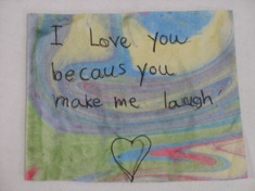 For more fun ways to express your love, check out 52 Simple ways to say, “I Love You” or others like it. It gives lots of fun ways to show your love, in more ways than just words, as important as that is. Different people (that includes kids!) have different love languages, so if you only express your love through words, they have a hard time recognizing it as love. To help you discover the love languages of the people in your family, check out “The Five Love Languages.” It describes 5 ways to express love-- words, gifts, time, touch, and acts of service. You can find these books at your local Christian bookstore, or through on-line companies such as Great Christian Books.
