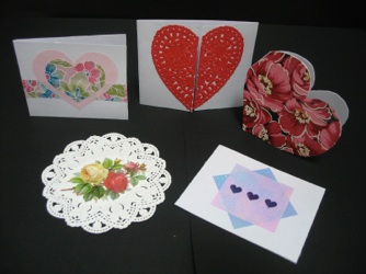 Provide red, white, and pink paper, along with paper doilies, heart stickers, glitter, glue, scissors that cut a fancy edge, hole punches that cut holes in shapes suitable for Valentine cards, glue stick, tape, double stick tape, ribbon, rick=rack, bits of lace, buttons, etc. Stand back and see how creative they can be. Be warned--if your children are young, the cards are going to be ugly, but so full of love! Give them lots of experience, and they will be producing gorgeous cards by the time they are in middle school.