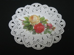 It doesn’t get any simpler than this--stick a flower sticker in the middle of a paper doily. You could mount this on a red heart.
