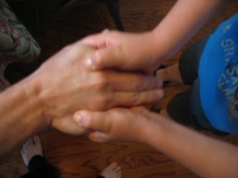 When I was a child, our family squeezed or tapped, “I love you so very much.” 4 long, then 3 quick-- once for each syllable.