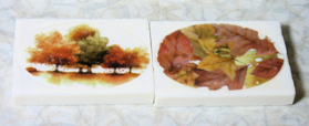 The felt leaves hung in the window are actually a set of felt coasters that I bought at a hundred yen store. If you like the way they look, you can cut your own out of felt, and use real leaves for a pattern.
