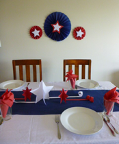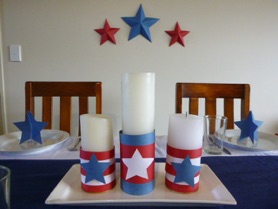 View how to make more paper decorations for the 4th of July, such as using unopened cans of food for candle stands, or paper stars that stand up for a centerpiece, or even stars on the wall that are 3-D even though they are made out of flat paper.