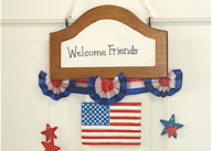 Independence Day buntings inspired these festive 4th of July decorations made from colored paper. Make a wreath, or medallions and stars for wall decorations or jazz up a candle centerpiece. Make plain napkins into flags, too.