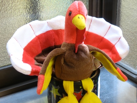 A Beanie Baby turkey can double as a toy and a Thanksgiving decoration.