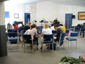 The front of the sanctuary is a good place to hang banners since this is where everyone gathers for worship--to let everyone know something special is happening. If it is not possible to hang them on the walls because of windows, pipe organs, etc, you can buy stands that sit on the floor and hang them from there. If you do hang banners on the walls, you will need curtain rod style hooks rather than picture hooks if the dowels have decorative ends (such as balls), that hold the dowels away from the walls.