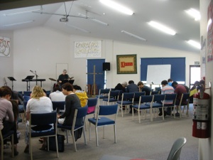 3.The letters need to be big enough to be legible from a distance. If you have any question, print out a sheet of paper with different sizes of words and prop them up where the banner will be displayed. Go to the farthest distance possible and see which size can be read. There is no reason to hang a banner with a message if the people in the back row can’t even read it!