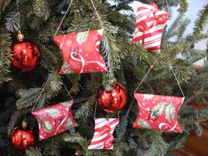 These little packets are actually toilet paper tubes cut in half, or paper towel tubes, if you prefer. Glue on wrapping paper, then squeeze the 2 open ends to close the little pockets. Let younger children pick them in any order, but for older children, number the packets so they have to work a little harder to find the right one, and will also see how many days are left till Christmas.