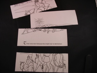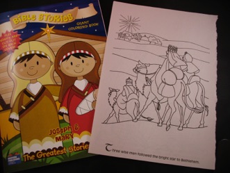 Fill each folder with something for your children to do. One folder could have candy canes to eat, another day could have a CD or DVD to watch or listen to, another could have an easy craft project. If your child likes to color in pictures, you could buy an inexpensive coloring book, and tear out pages to put in many of the folders. You can create more activities by cutting some of the coloring pages into puzzles, or drawing watches, clocks, phones, etc. onto the pictures to see if your kids can spot what was not used during the time of Jesus. The coloring book above was purchased at a dollar store, but I had to go to 3 different stores before I found one! Don’t be fooled by the cover--even if it is ugly, take a look at the drawings inside. Often the cover illustrator is different from the one who did the drawings in the book itself. Christian bookstores will have a bigger selection, and their activity books will have a greater variety of activities to do, like puzzles or mazes.