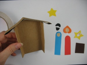 Sunday School > Crafts > 3 Paper Nativity Crafts > Angled Roof Paper Barn