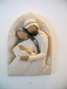 One wreath is plenty for such a small room, so I wanted something different for the door. When I mentioned to my mother-in-law that this was the only room in the house that didn't have a nativity scene, she sent me this Willowtree figure.