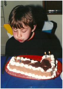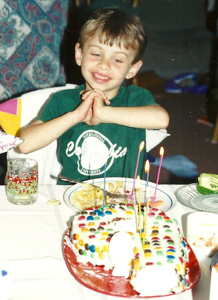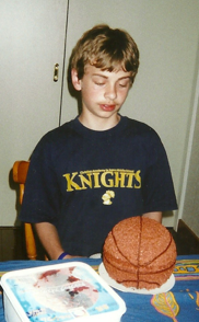 When he turned 12, I found a cake pan that made completely round ball cakes. I made him a basketball cake. For his 17th birthday, I made a trophy cake (using the same cake pan) because his favorite pro basketball team had a chance of winning in the playoffs. Unfortunately, I didn’t look up on the internet what the trophy looked like, because I thought I remembered what it looked like. Oops!