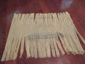 Cut strips on both sides. Leave at least 2 inches in the middle that is not cut. Cutting can be frustrating for some children, so be prepared to step in and help--it will be no fun if it takes 30 minutes to cut the strips. It won’t take an adult more than 5 or 10 min.