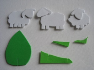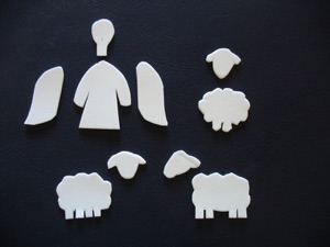 Cut out the parts of the angel and sheep according to the pattern. (see below)