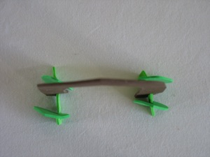 To make the trees stand, hook one palm leaf of the taller tree between the top of the trunk of the shorter tree, then splay the legs apart so it looks like 4 trees.