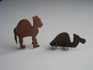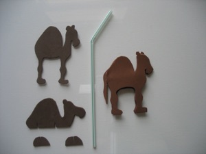 Make a standing camel by cutting out 2 of the same shape. Glue them along the top and sides, but leave the legs and bottom of the body open.