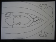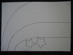Cut the night sky as shown in the pattern. Put notches where the arrows indicate. To make it stand, slide the notches together and make the 2 legs stand at angles to each other, like 2 legs of a tripod. They will stand this way, but to make them more sturdy, fasten a brace and bushes on either side of each leg. Fasten an angel to the top with notches, too.