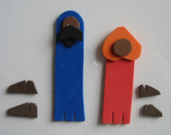 Make stands to look like shoes for the wise men, too. Notches in the bodies slide into the slots in the shoes. Cut out gifts and glue them to the fronts of the wise men.