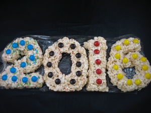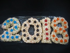Make Rice Krispies cookies, and while they are warm enough to handle, but not too hot to burn, shape them into the number for the year the olympics are being held.