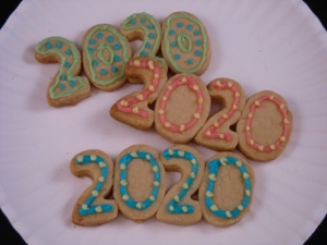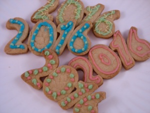 Use number cookie cutters to cut cookie dough. Put the number cookies right next to each other on the cookie sheet rather than leaving an inch between them as you usually do, so that as they bake, they stick together. You can also use various sizes of bottle caps or glasses to make the olympic rings. You can add color without adding sugar by making an egg wash to brush on the cookies before you bake them. Simply mix a few drops of food coloring with either the egg yolk or egg white and brush it onto the cookies with a pastry brush. Bake as usual.