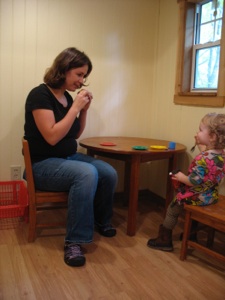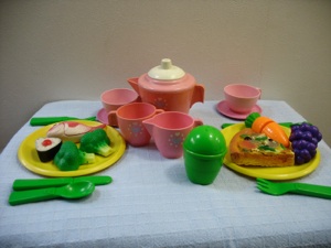 Eating is such a big part of our day, it is not wonder that children love to pretend cooking and eating. It is so much more fun to drink tea WITH someone than to drink it all alone. So if Mommy joins, it becomes a real party! Dressing up like a princess can make it even more fun. Occasionally providing real food can make it an extra special treat.