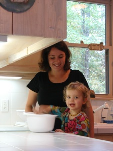 Toddlers learn by imitating you, so they want to do whatever you are doing. Try to think of ways or parts of cooking that they can do. When my girls were one and a half, I started them stirring what ever I was making. By the time they turned 2, they were adding ingredients that I pre-measured. By two and a half, they could fill measuring cups to the top. They can tear lettuce, wipe up spills, and fetch items from lower shelves.Yes, it makes more of a mess and takes more time when your toddler “helps.” But they are learning so much, it is worth a little extra mess!!