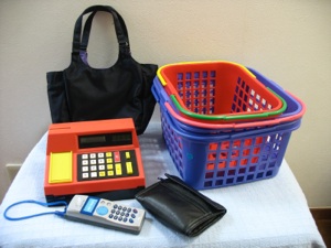 Shopping is another activity that they see you doing frequently. It is not too hard to give them the tools to imitate you. Old purses, wallets, and cell phones can be used as toys, or buy inexpensive items at dollar stores, or Goodwill stores. A toy cash register is not essential, but adds a lot of fun. Use small paper bags with handles rather than plastic bags to avoid suffocation dangers. I kept my unopened cans and boxes on lower shelves of the cupboard, so all i had to do was open a cupboard door to provide real items to complete their shopping experience.