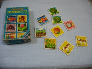 Toddlers are too young to play Concentration the real way. However, a set of these cards can help them learn vocabulary as well as the concept of “same” and “different.” Spread a few of the cards face up and pick up one card, and ask, “Where is the dog? Can you find the dog?” If your child picks up the wrong card, say, “No, that is different. Can you find the same card of the dog?” When they find the matching card, exclaim, “Yes! that is the same card! You found the dog card.” If your child has difficulty doing this, use fewer cards until he gets the hang of it, or wait a couple of months and try again.