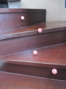 Roll the balls down stairs, or throw them up the stairs and watch them roll back down. If you don’t have stairs, make tracks for the balls to roll on, by cutting wrapping paper tubes in half to form chutes for the balls to roll down. Note: If you are playing on stairs, have an adult at the top to keep children from falling down the stairs. Another adult or older siblings can catch the balls at the bottom, and throw them back up, or carry them up.