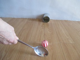 Have a contest to see who can press down on a ball that is resting on a table or floor, to make it spin away, then come back again without touching the ball.