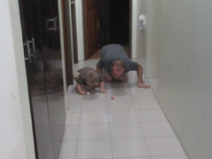 This can be as mild or wild as you want to make it. If you want it mild, stay on your knees and only keep one ball going. If you want a mad house, keep all 4 balls going at once.