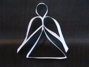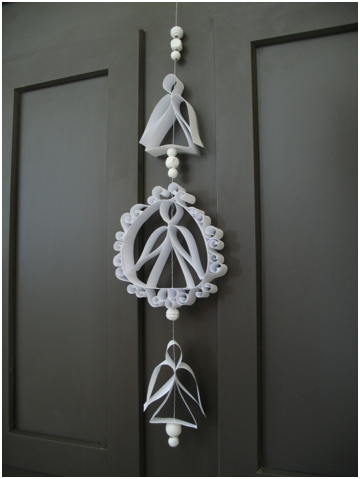 7.Optional: make a strip of a longer piece of paper, glue or staple it into a circle, and hang the angel in the middle of the circle.