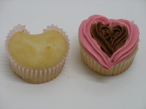 Line cupcake tins with cupcake liners and fill with cupcake batter, as usual. Then put one marble between each cup and the paper cupcake liner and bake as usual (the marbles should not be in contact with the cake batter.) This forms the indentation or “v” shape at the top of the heart. Once the cupcakes have cooled, remove the marbles. When you ice them, they look just like hearts!