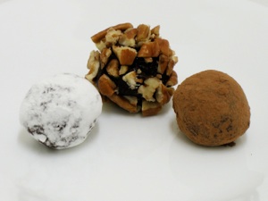 These unbelievable chocolates are so easy to make--the are made the same way as the ganache. Just heat a cup of heavy cream. Turn off the heat and stir in a cup of chopped chocolate until it melts. (Ghirardelli chocolate chips work great, but, oddly, Nestle’s does not--neither the semi sweet nor milk chocolate chips would hold their form even with twice the chocolate.) Line a small square pan with wax paper and pour the chocolate in and put in the refrigerator to cool. Then it cut into squares. I like it this way best, but you can form them into balls, then roll the balls in cocoa, powdered sugar, or nuts. Keep them in the refrigerator until they are eaten. I guarantee they do not last long once everyone has tasted one!
