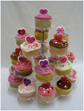 The best way to make your cupcakes say, “Wow!” is a cupcake stand. They come in a variety of styles and prices. Cardboard ones only cost about $5.
