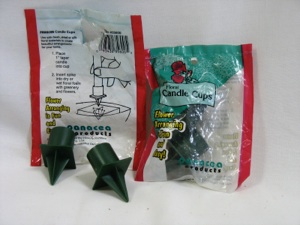I used a plastic planter bottom and cut the sides shorter with a box cutter. I looked around for something that was the same diameter as candles, and found candy sold in plastic tubes.
