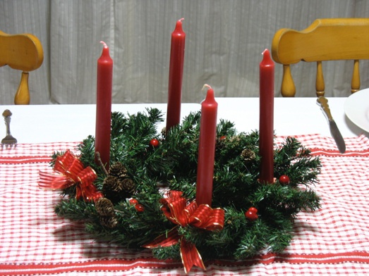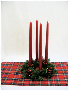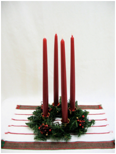 Again, you can change the look by varying the background with an assortment runners or place mats under the advent wreath.