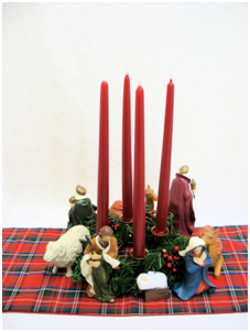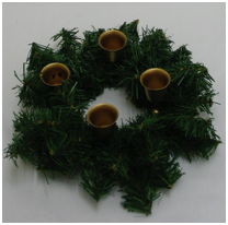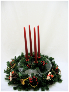 An advent wreath is used to count down the 4 Sundays until Christmas. Traditionally purple candles are used, with a pink one lit for Christmas day, but any color can be used.