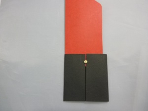 5. Slide the red lipstick back into the black base so the head of the brad is on the outside of the slit in the black base.
