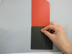 9. To make the accent strip, cut out the red strip that is as long as the width of the pattern sheet, then fold it on the dotted lines so the ends meet in the middle.