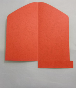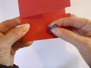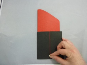 3.Fold the large red shape in half along the dotted line.