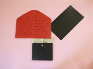 13. Once the glue is dry, write a message on the inside of the red lipstick. Test the card to make sure everything works.