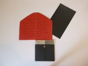 12. Once the glue is dry, write a message on the inside of the red lipstick. Test the card to make sure everything works.