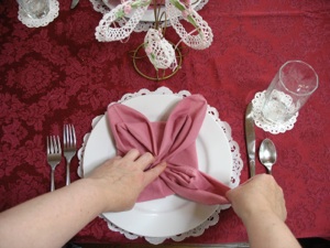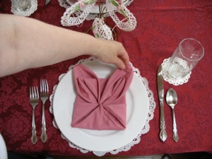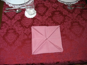 NOTE: If the points of the cloth napkin do not stand up, you may need to iron it with spray starch.