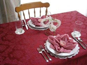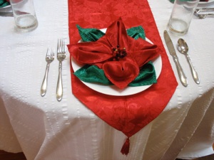 Fan shaped napkins (serviettes) dress up any table, whether cloth or paper.
