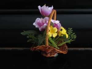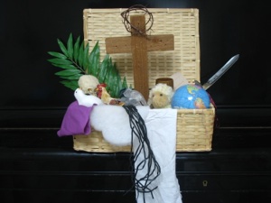 Garden of Gethsemane: “Silk” flowers can be one way to represent the garden. I bought these flowers in the tiny basket at a 100 yen store. They could be put into a small vase or bottle instead of a basket.
